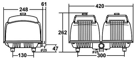 Rated Performance (±5%) (lpm, cfm) | 250, 8.8 | 300, 10.6 | 400, 14.1 | 500, 17.7 |
